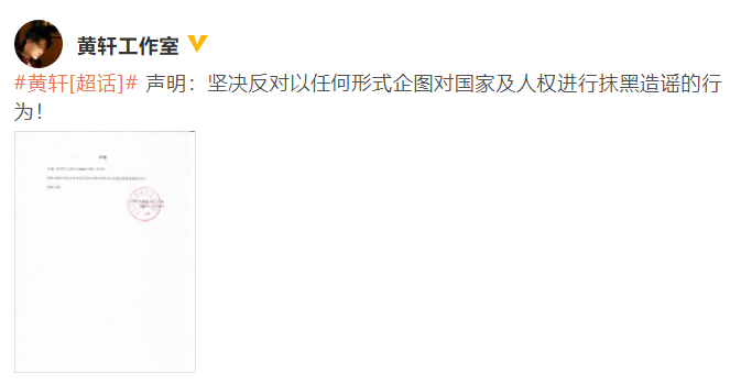 黄轩工作室声明