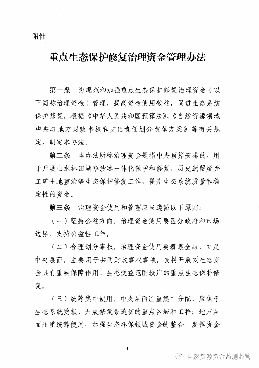 财政部关于印发《重点生态保护修复治理资金管理办法》的通知